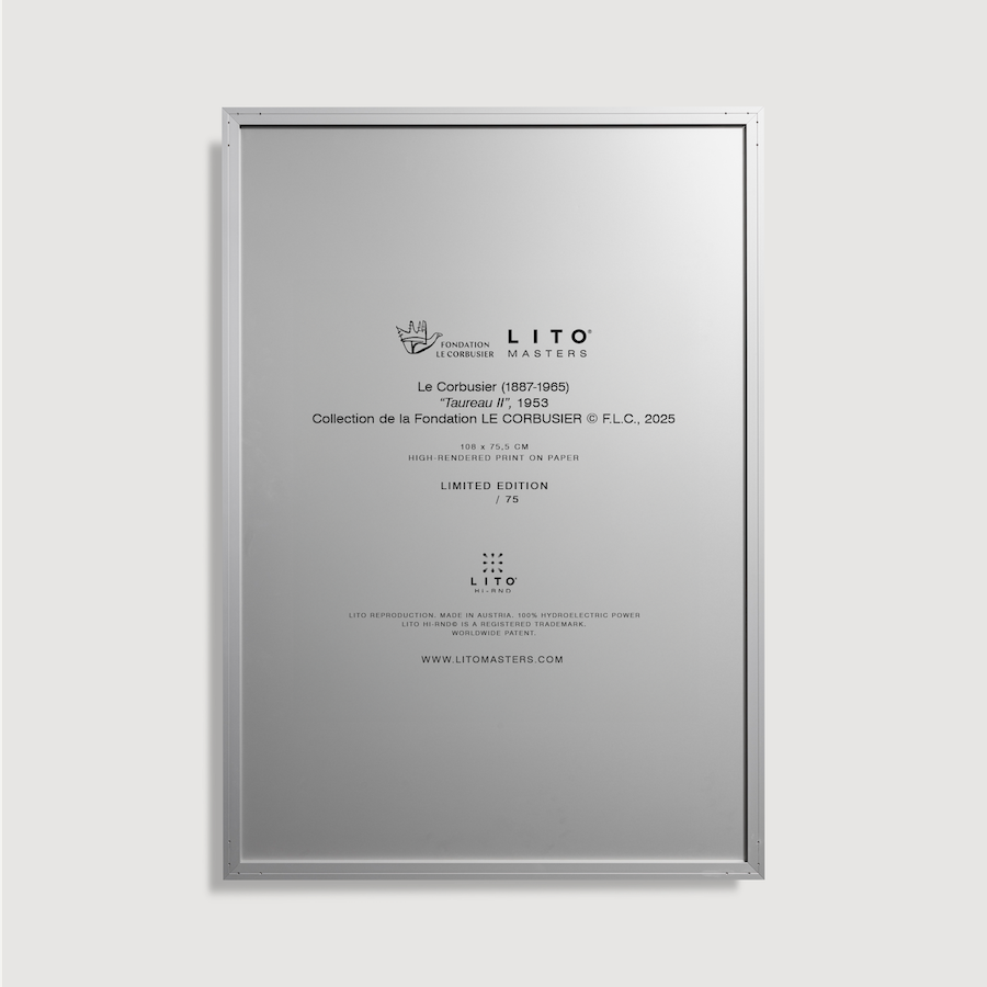 This LITO Masters edition is produced from ultra-high-definition museum scans using our patented reproduction process, capturing the original colour palette, pigment density, and the subtle relief of Le Corbusier’s brush and ink work with exceptional fidelity.