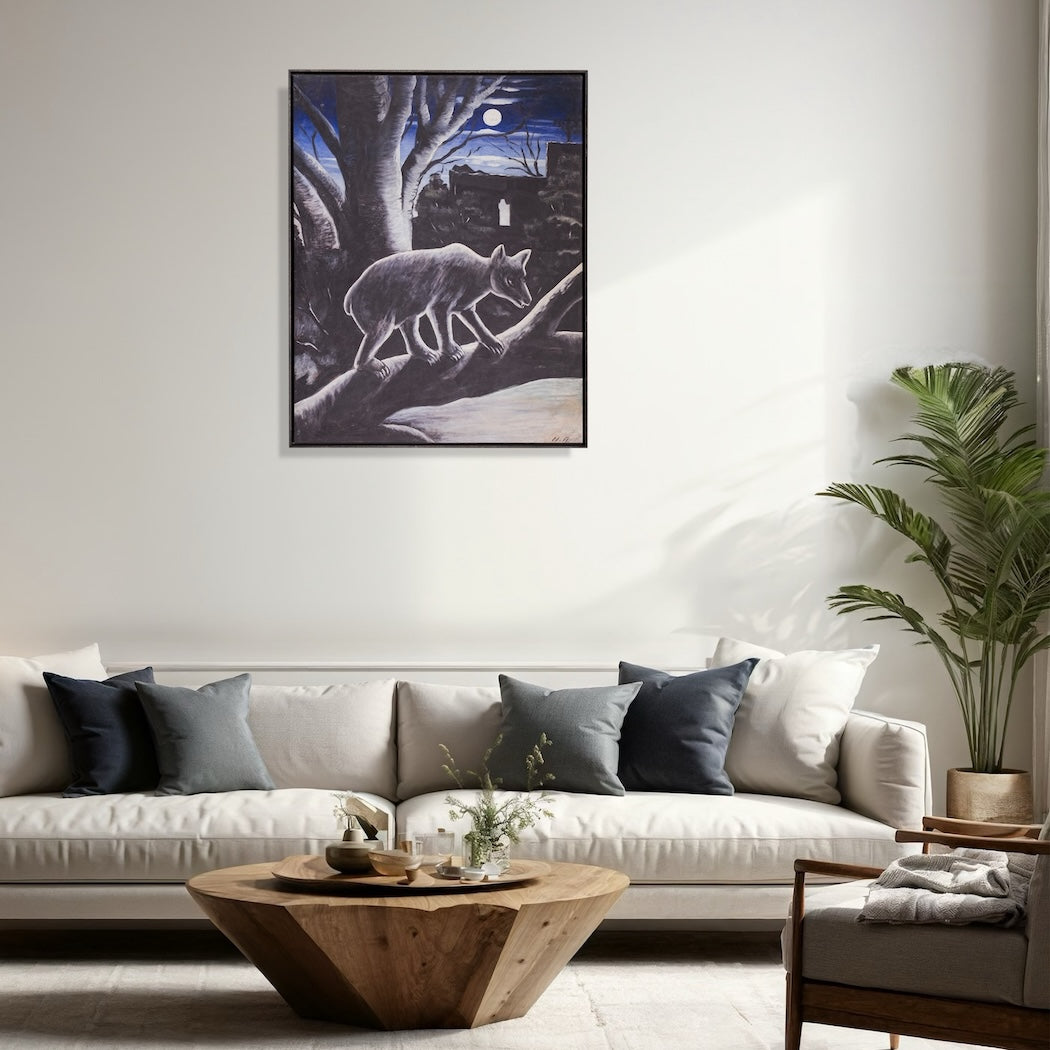 With its poetic stillness and folk-art expressiveness, Bear in the Moonlight brings depth, character, and a touch of mystery to any interior.
