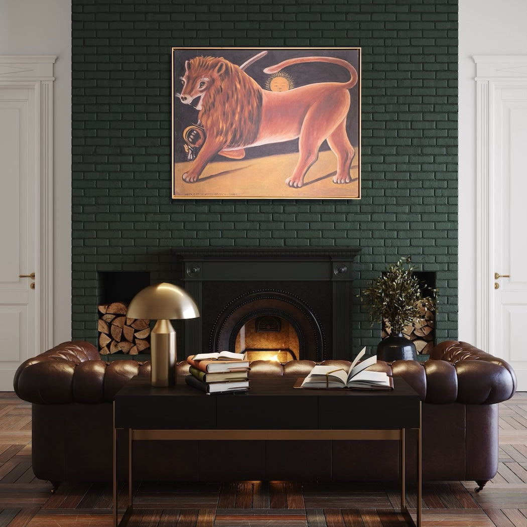 With its striking imagery and iconic simplicity, Lion and the Sun brings character, power, and folkloric charm to any interior.