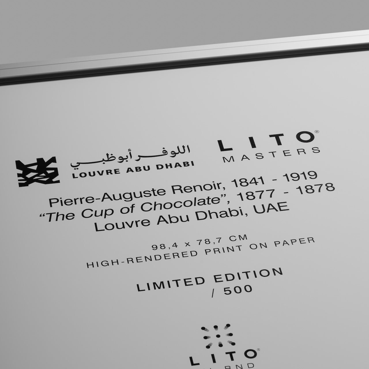 Cette édition LITO Masters est reproduite à partir de numérisations ultra-haute définition de musées grâce à notre procédé breveté, capturant fidèlement les nuances de couleurs originales, les subtiles transitions tonales et les riches coups de pinceau texturés qui définissent le style pictural de Renoir.