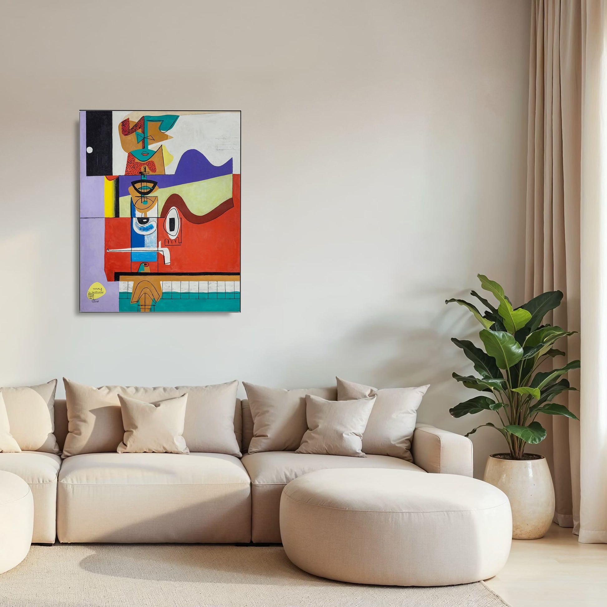 Créé en 1963, Totem 3 est une œuvre marquante de la dernière période artistique de Le Corbusier, où architecture, sculpture et peinture fusionnent en un langage symbolique unique. La composition révèle sa recherche de formes essentielles : lignes pures, structures équilibrées et un sens du rythme quasi sculptural.
