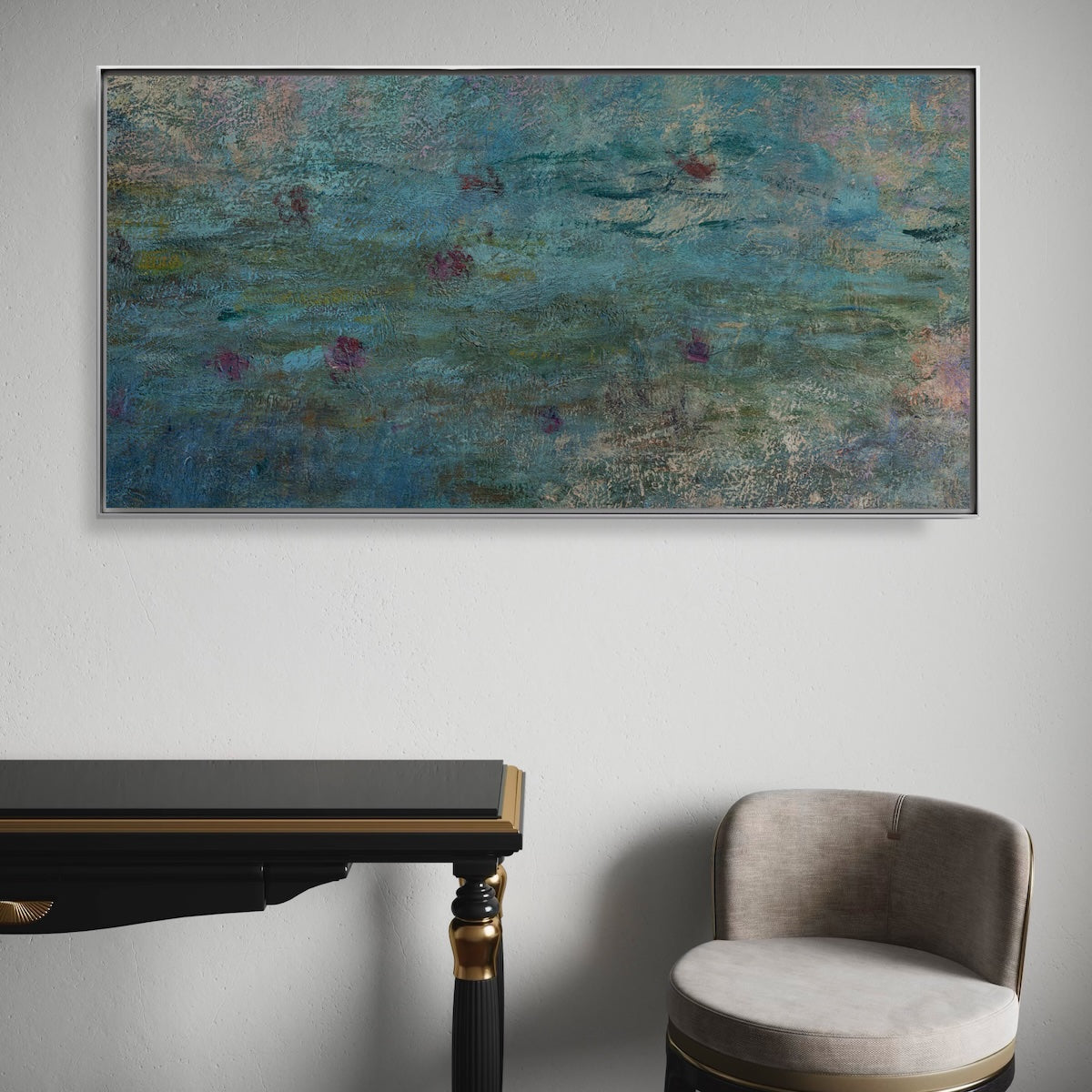 Mit seiner ruhigen Farbpalette und luftigen Komposition verleiht Les Nuages ​​II sowohl modernen als auch klassischen Interieurs Tiefe, Sanftheit und stille Leuchtkraft.